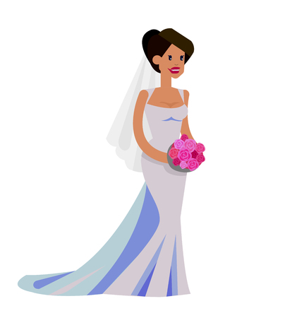 ハッピーかわいい結婚式の花嫁 ベクトル結婚式の詳細なキャラクター花嫁 美しい笑顔の花嫁の結婚式します クールな結婚式の花嫁フラット イラスト ベクトルの結婚式の花嫁のイラスト素材 ベクタ Image