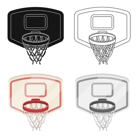 バスケットの近くのボールを持つ手 バスケット ボール漫画スタイルのベクトル シンボル ストック イラストの Web の 1 つのアイコン のイラスト素材 ベクタ Image